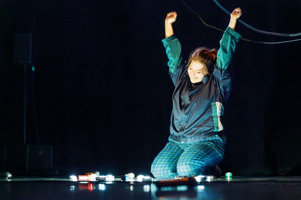 « Ce spectacle est né du besoin intime et viscéral de recycler les dissonances vertigineuses entre l’état du monde et mes idéaux, mes espoirs de jeune femme. Je voulais crier la vie au milieu des tumultes, chercher le sens et convoquer ce qui crépite en soi. Agir.